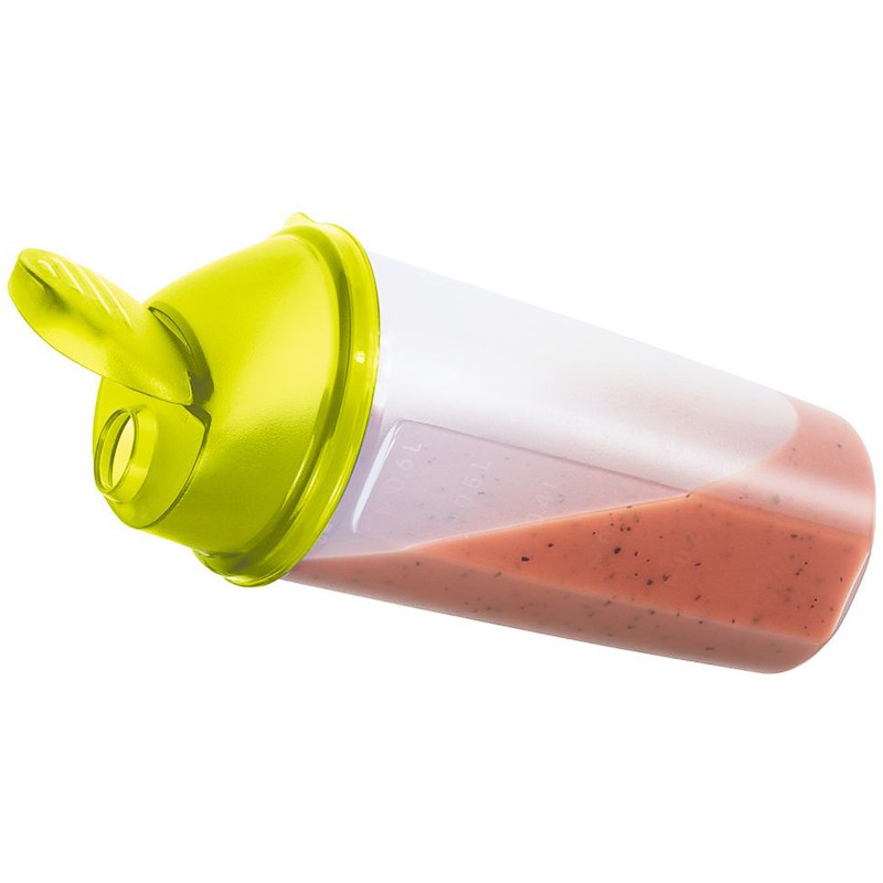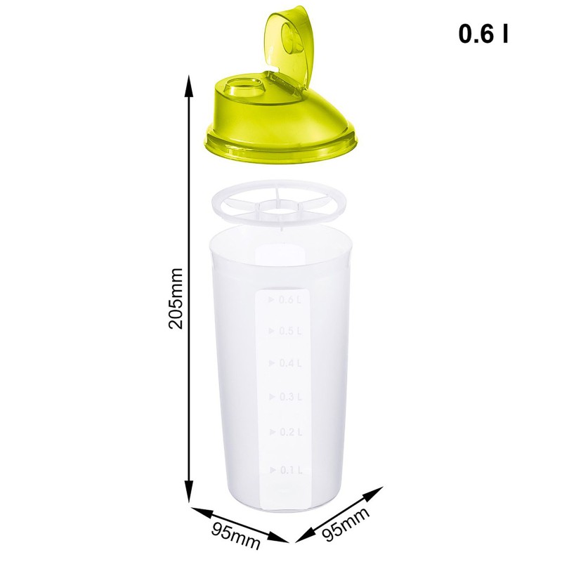 Il contenitore trasparente ha un volume di 0,6 l e può essere chiuso in modo sicuro per il trasporto con l’aiuto del coperchio con beccuccio integrato.